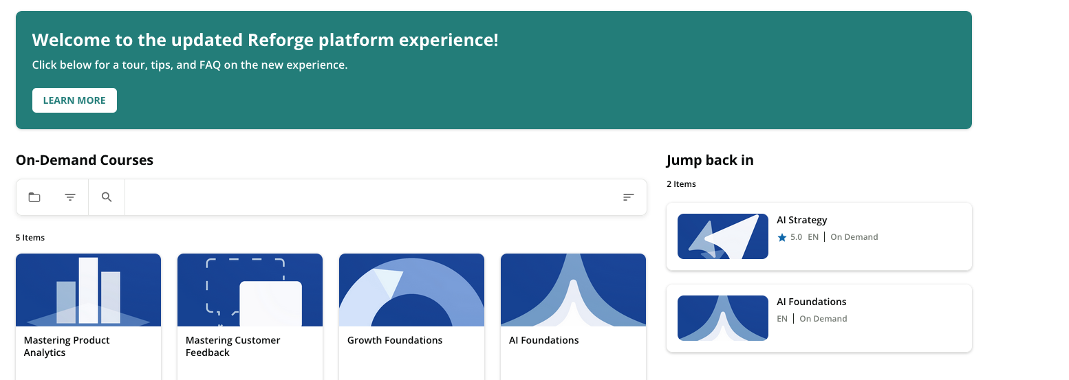 Your Reforge Membership still provides immediate access to our extensive library of On-Demand courses. With our recently updated platform, we have implemented some exciting updates to our on-demand courses, all aimed at enhancing your learning experience!