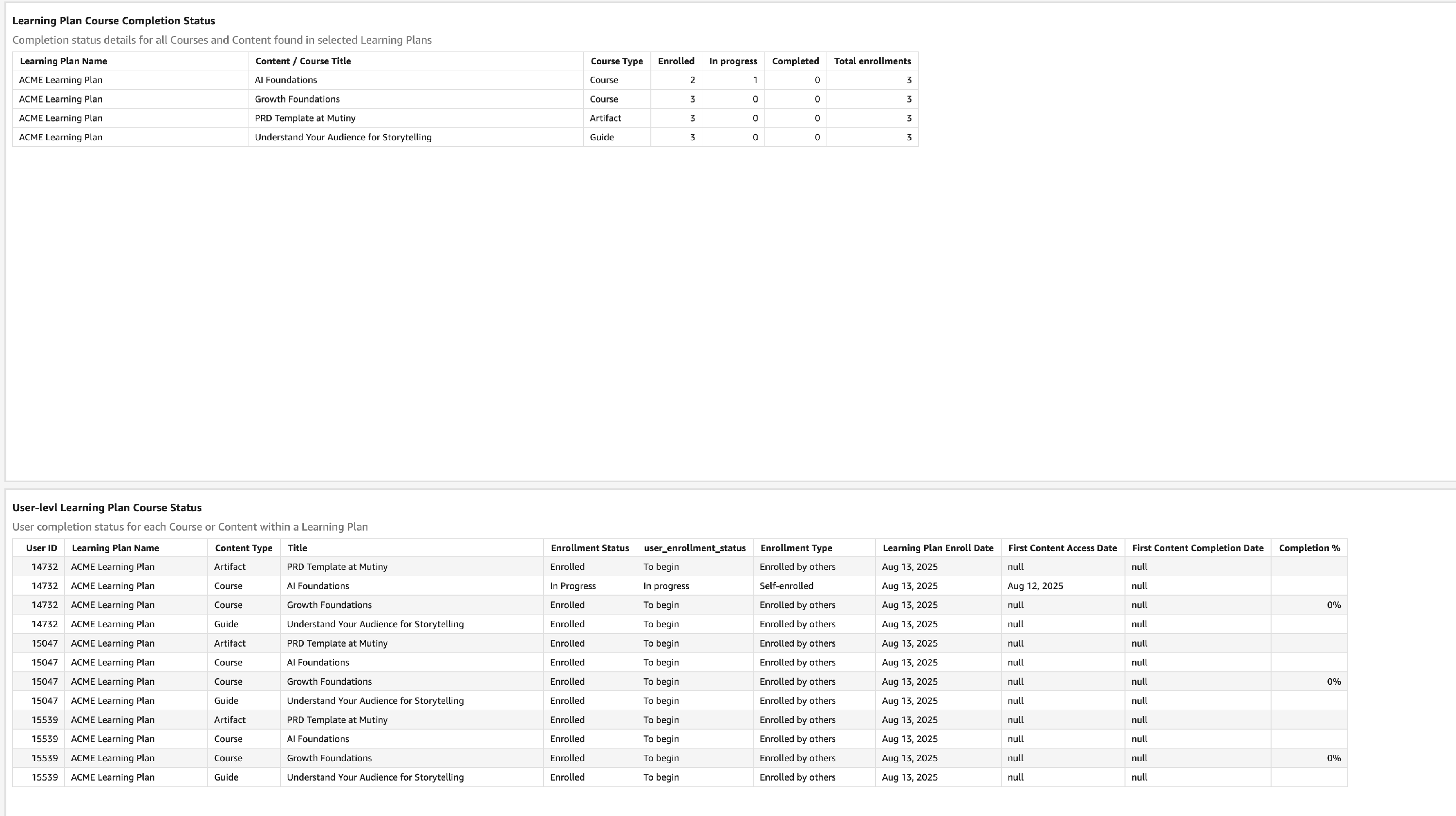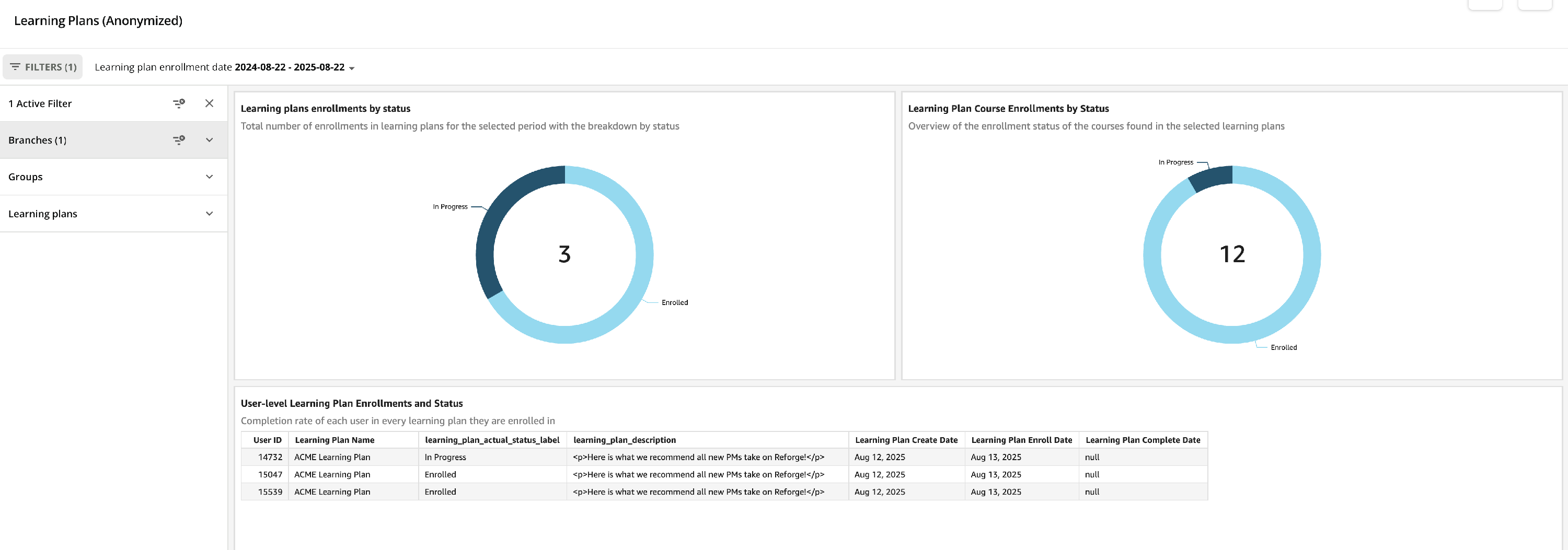This report will capture enrollment and completion of assigned Learning paths to your team.