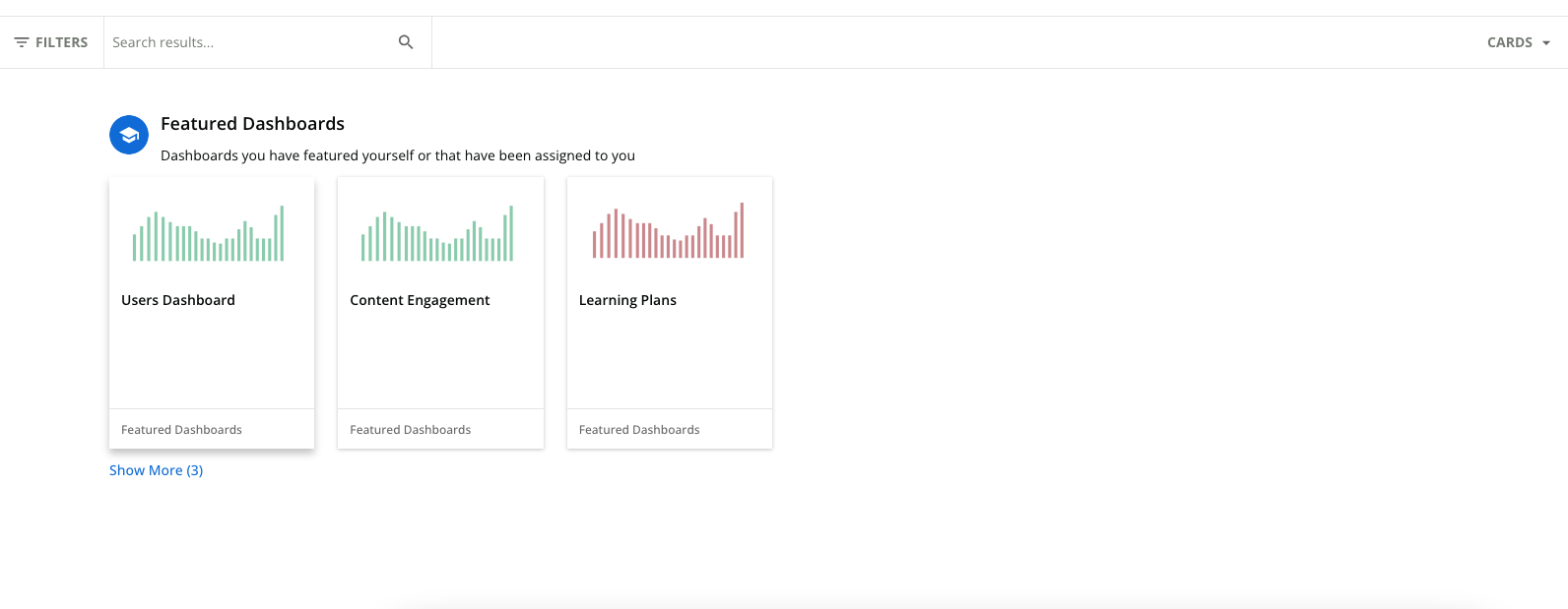 This dedicated reporting page will provide your team's plan manager with data for Users, Content Views, and Learning Plans. *Engagement reports are still available upon request, which may include additional analytics for your team.